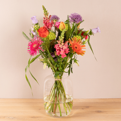 Paars, oranje en roze plukboeket